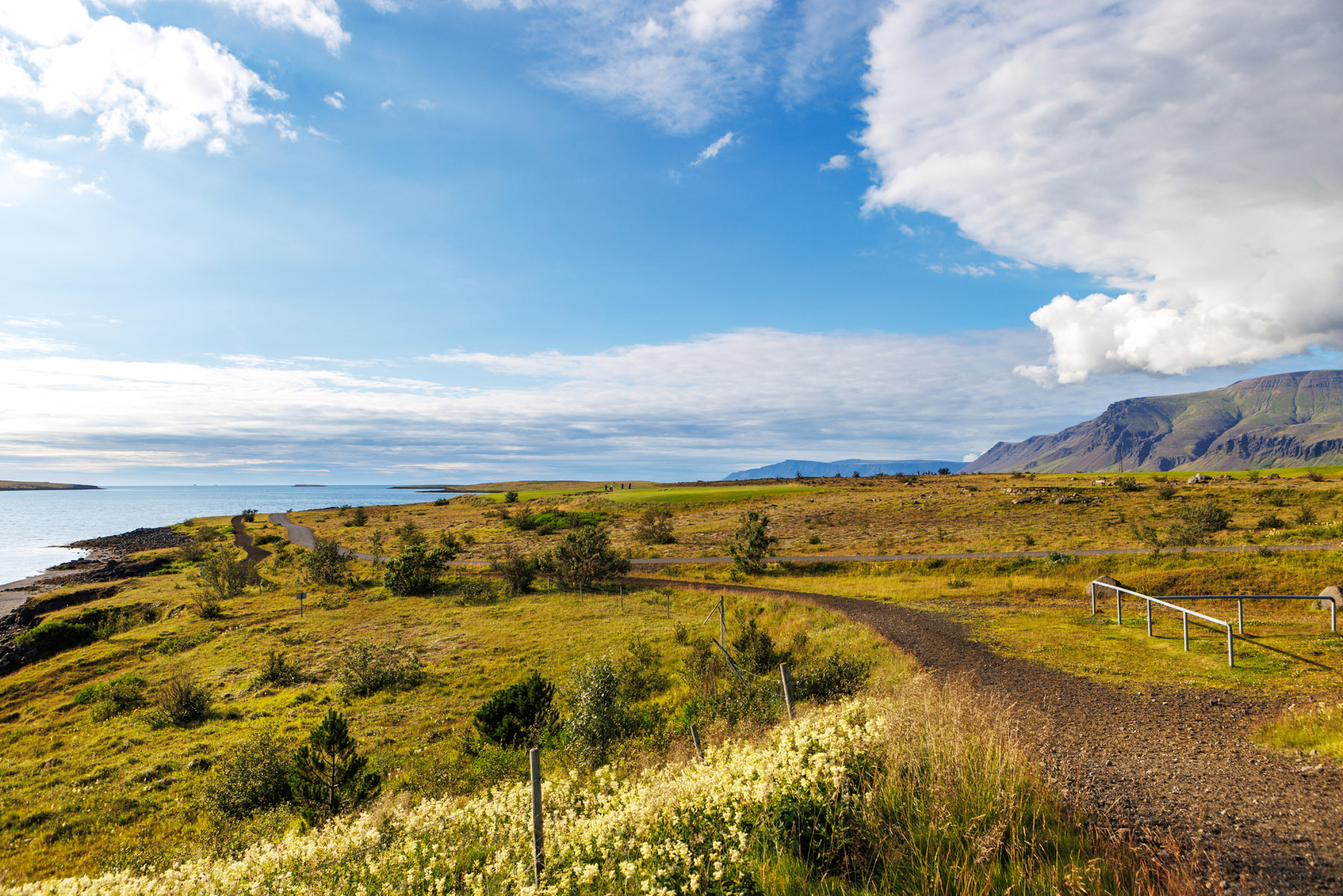 Þessi 3 km leið um Blikastaðanesið hentar öllum. Gengið er á malbikuðum stíg og hefst leiðin við bílastæðið hjá Hlíðarvelli, golfvellinum í Mosfellsbæ. Byrjað er að ganga á milli golfbrauta þangað til komið er að strandstíg sem liggur út með Leiruvoginum. Þar er beygt til vinstri og gengið meðfram sjónum. Þarna er gott útsýni til Esju og Akrafjalls. Gengið er meðfram Blikastaðanesinu og beygt aftur til vinstri þar til komið er aftur að upphafi strandleiðarinnar. Þá er gengin sama leið til baka eftir stígnum á golfvellinum að bílastæðinu. Blikastaðanesið er hluti af friðlýstu svæði sem nær frá Blikastaðakró og inn Leirufjörðinn. Það er mikilvægt búsvæði fugla og viðkomustaður farfugla á fartíma þeirra, til að mynda margæsa, en einnig má þar sjá þar fjölda vaðfuglategunda á vorin. Þarna halda sendlingar til á vetrum og oft sést til landsela. Verndargildi svæðisins felst einnig í breiðum sjávarfitjum og víðáttumiklum leirum.
